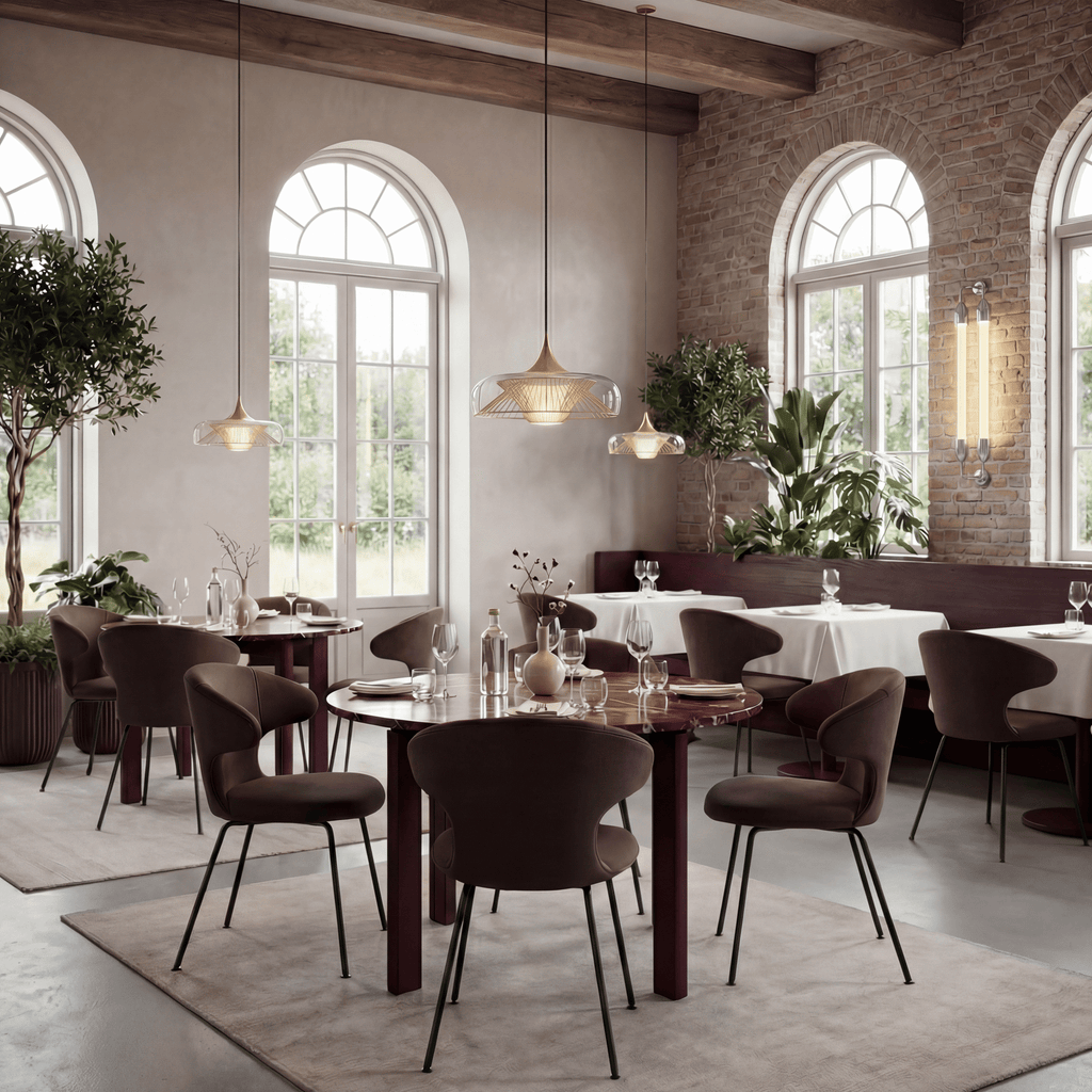 Ideel til både spiseområder og opholdsrum fungerer Chordis lampeskærmen som både en funktionel lyskilde og et dekorativt midtpunkt. Dens diskrete udtryk sikrer, at den passer ind i mange forskellige indretninger, hvor den tilføjer harmoni og et strejf af elegance.