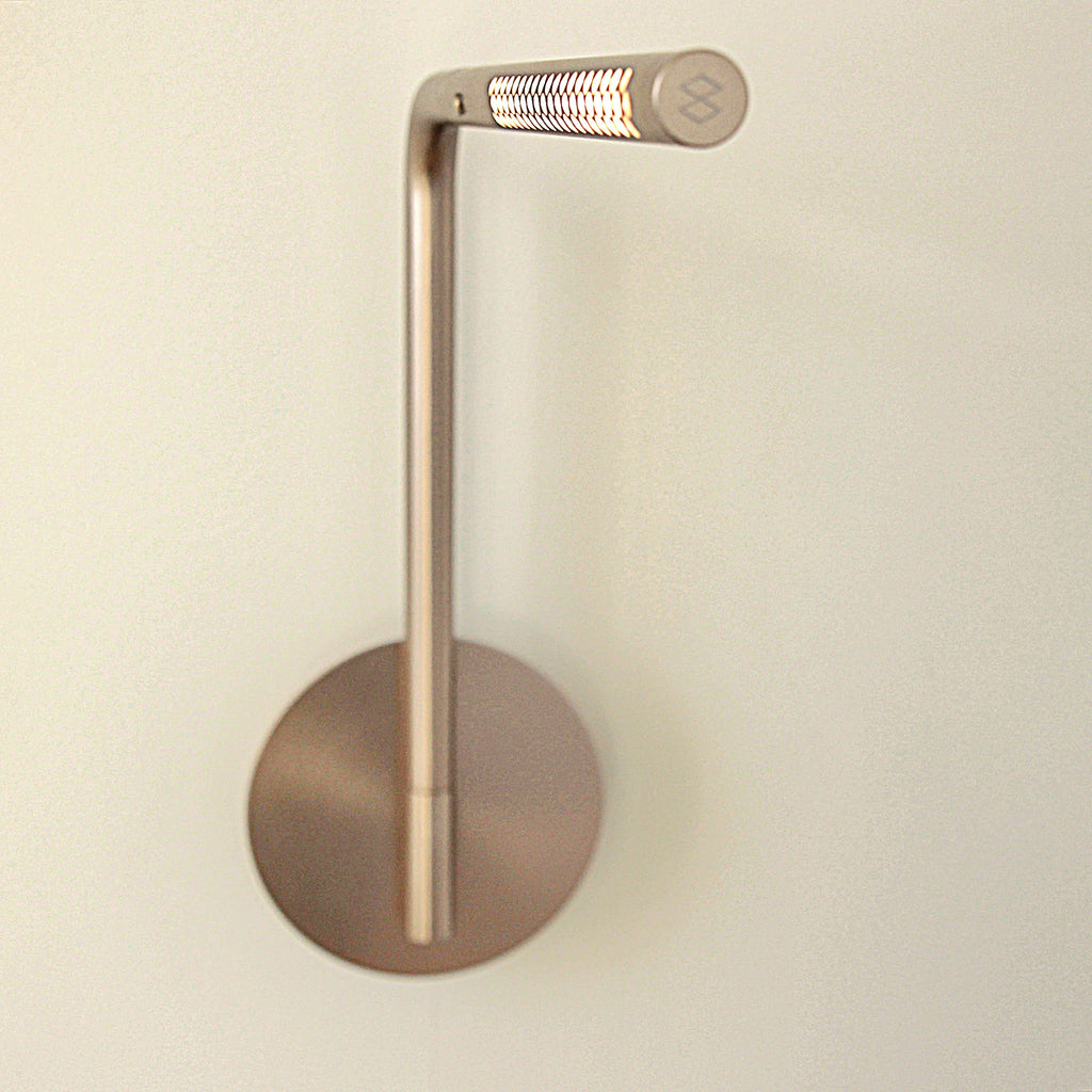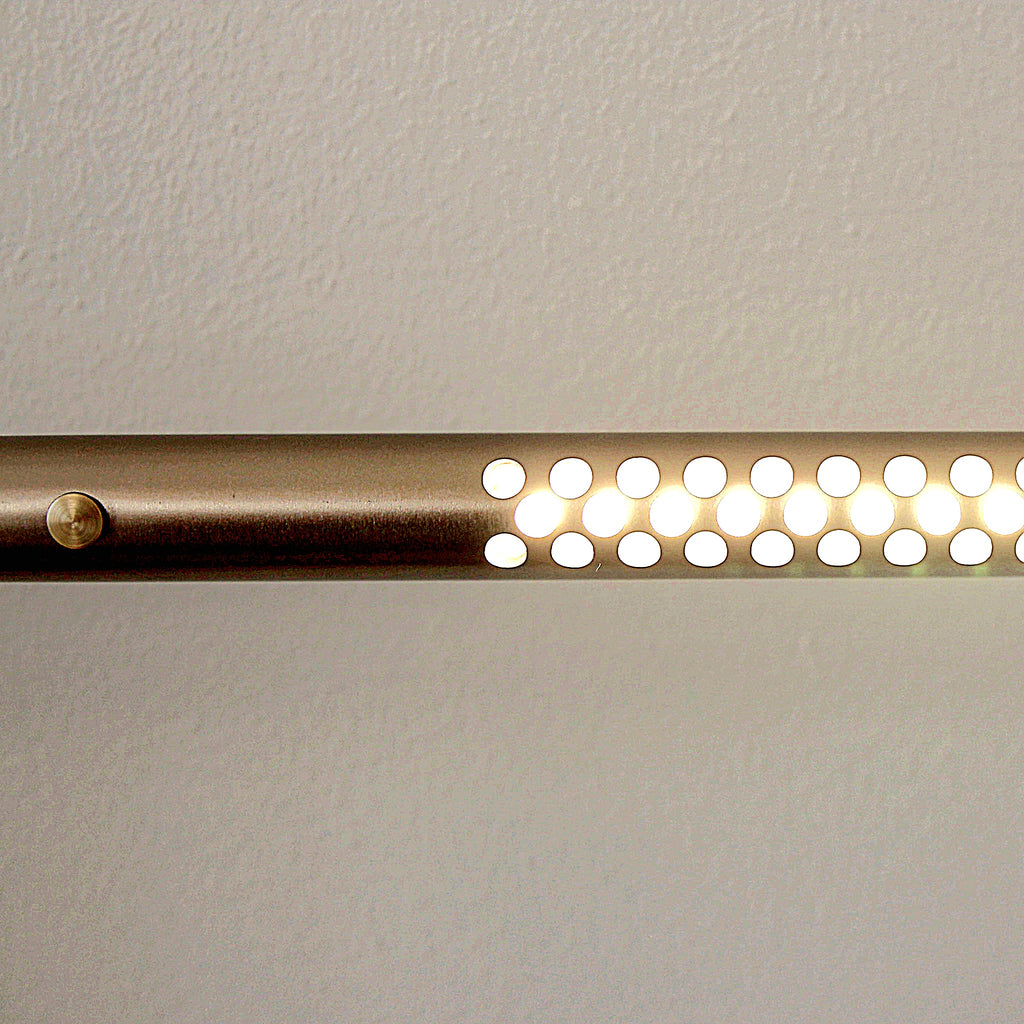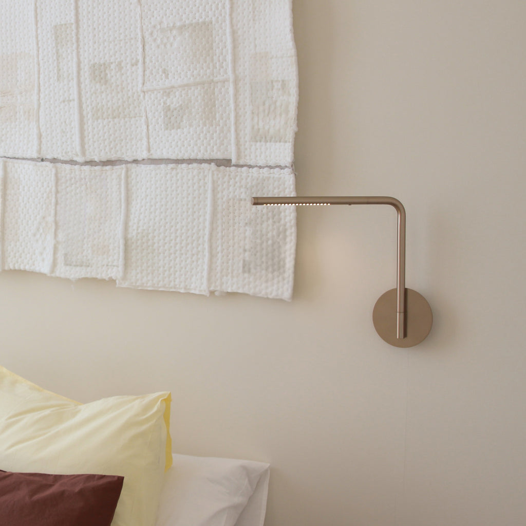 "Embracing form and function in a symphony of brass and dotted lines of light, the Omni wall lamp will cast a soft light on everything from your bedside to the painting on your walls."
