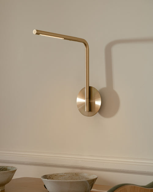 Omni Pivot est une applique murale polyvalente qui associe un design épuré à une fonctionnalité pratique. Le bras part du mur, tandis que l’élément lumineux peut pivoter et que le bras se règle, ce qui permet d’orienter la lumière exactement là où vous en avez besoin.