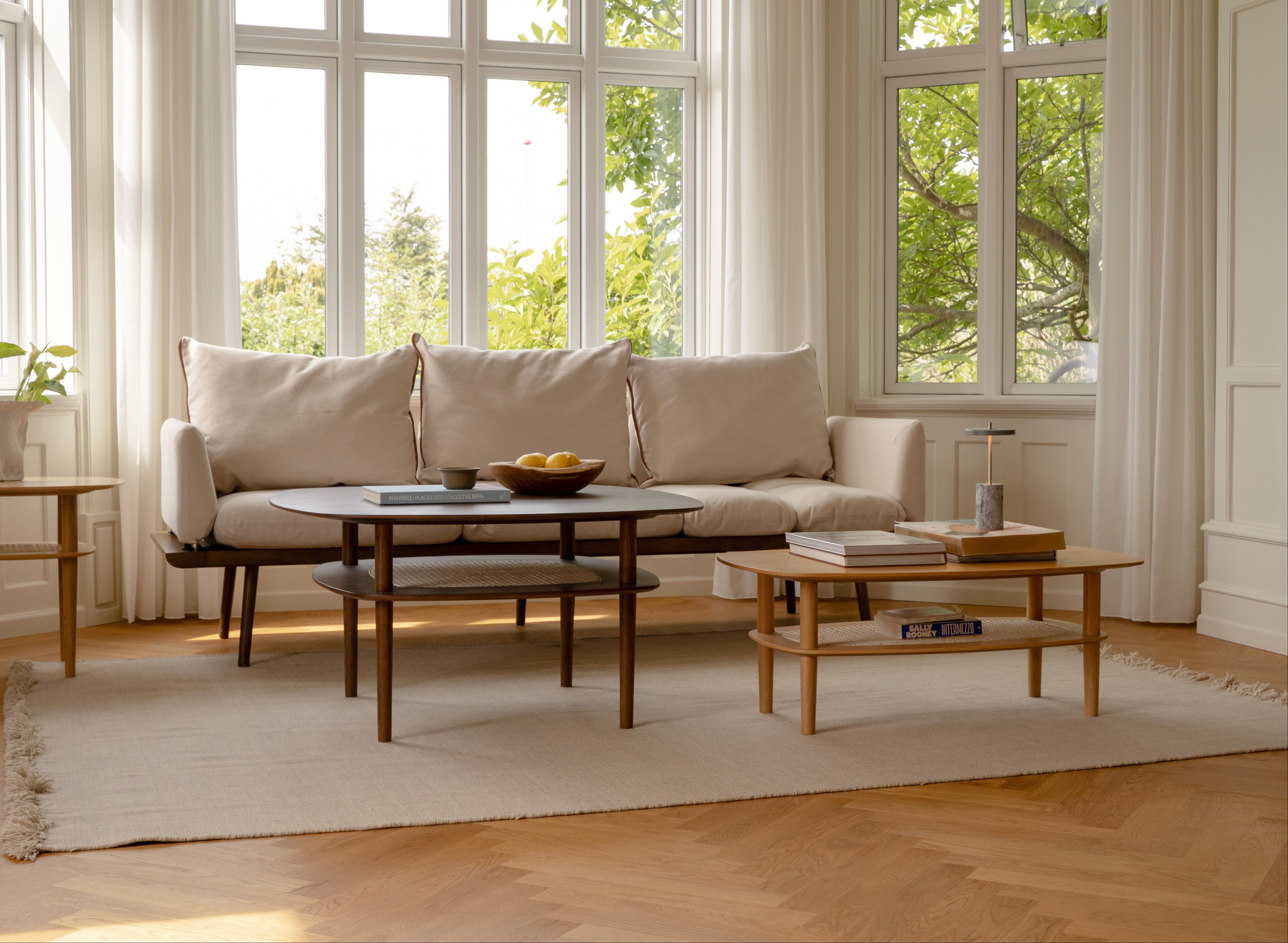 The Together collection introduces new sizes and heights, bringing greater flexibility to modern interiors. Crafted in oak with elegant details and a light cane shelf, the tables balance function and refinement, adapting effortlessly from private homes to lounge and hotel settings.