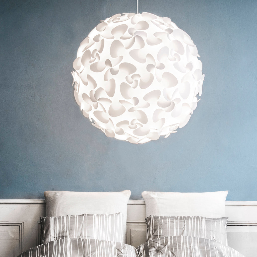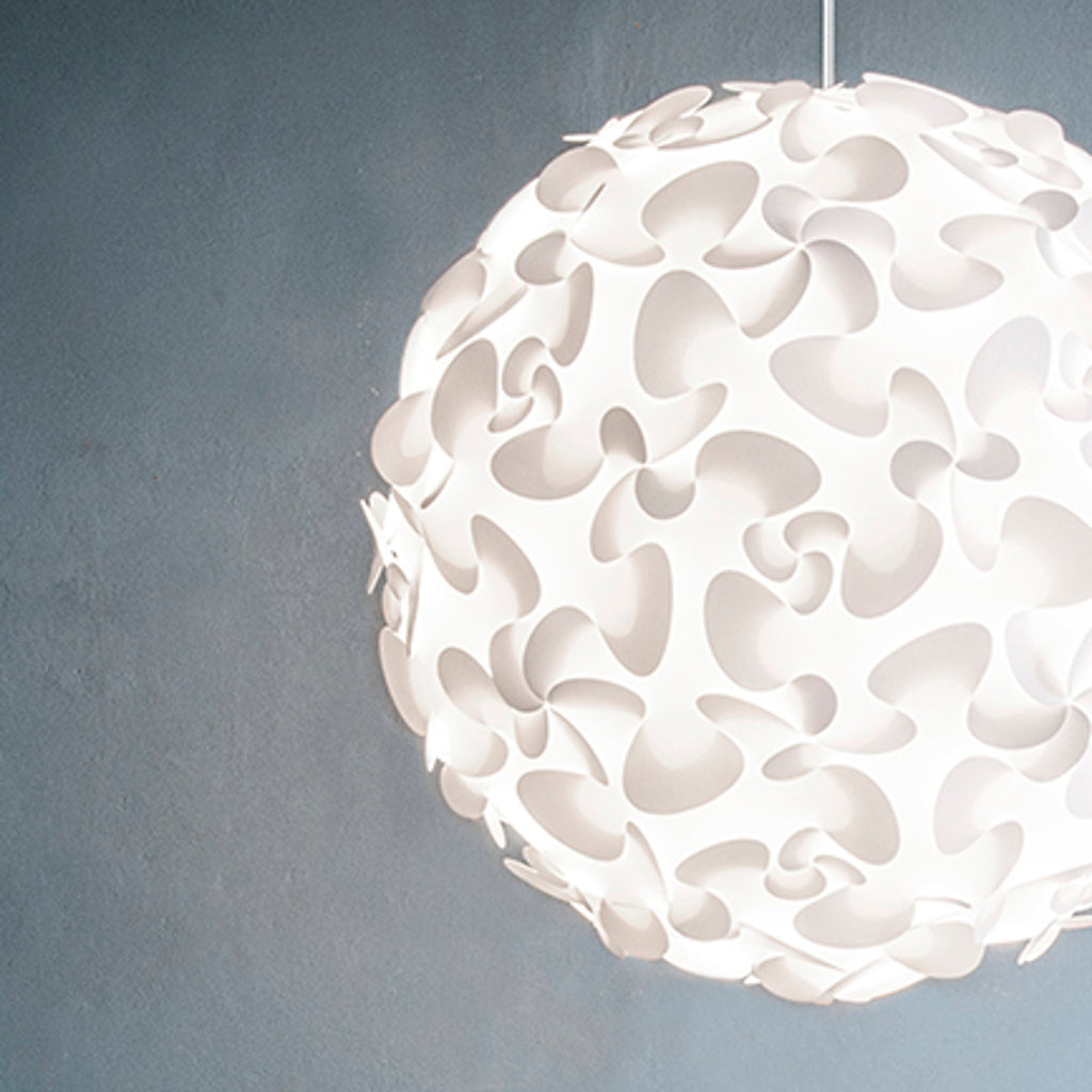 "The Lora lampshade resembles a sphere of flowers and has a clever design that leads your eyes around its round shape"