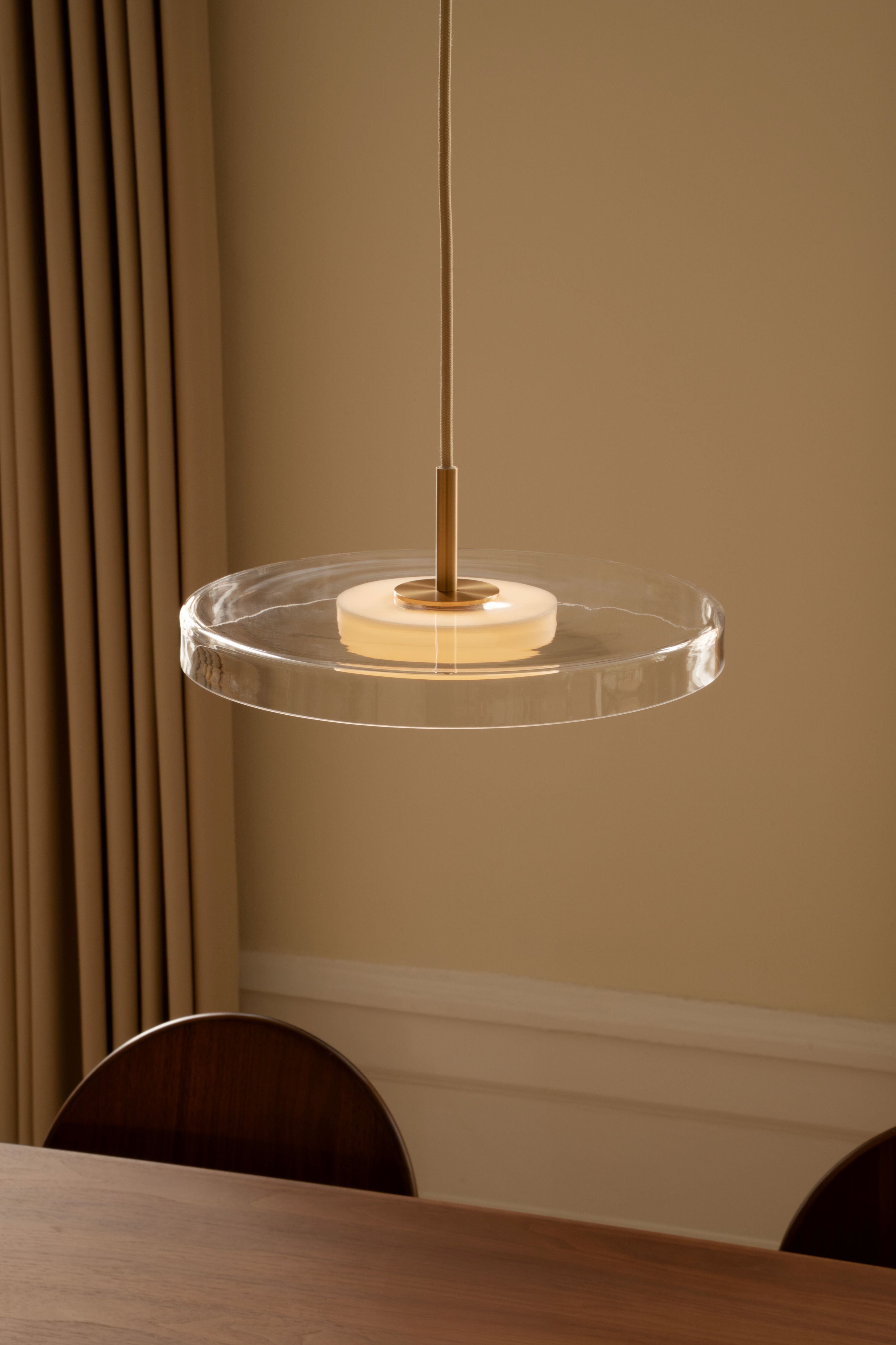 Asteria Glass pendant and Asteria Glass Move introduces a new lightness to the Asteria collection, combining timeless design with a contemporary edge. The transparent glass shade reveals a sculptural diffuser that creates a soft, ambient glow, while polished brass or steel accents add elegance. Available as a portable table lamp or a pendant, Asteria Glass blends refined aesthetics with modern functionality, making it ideal for both private homes and hospitality settings.