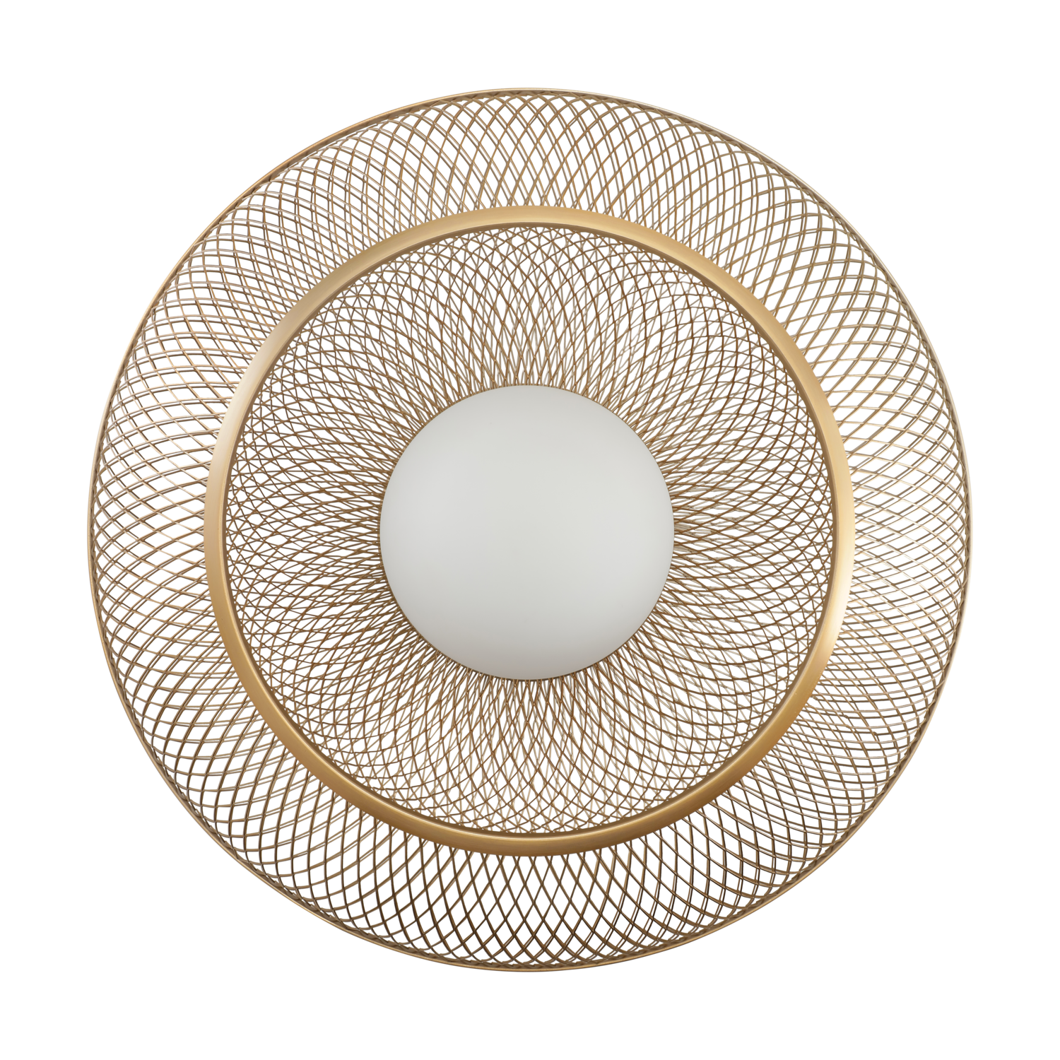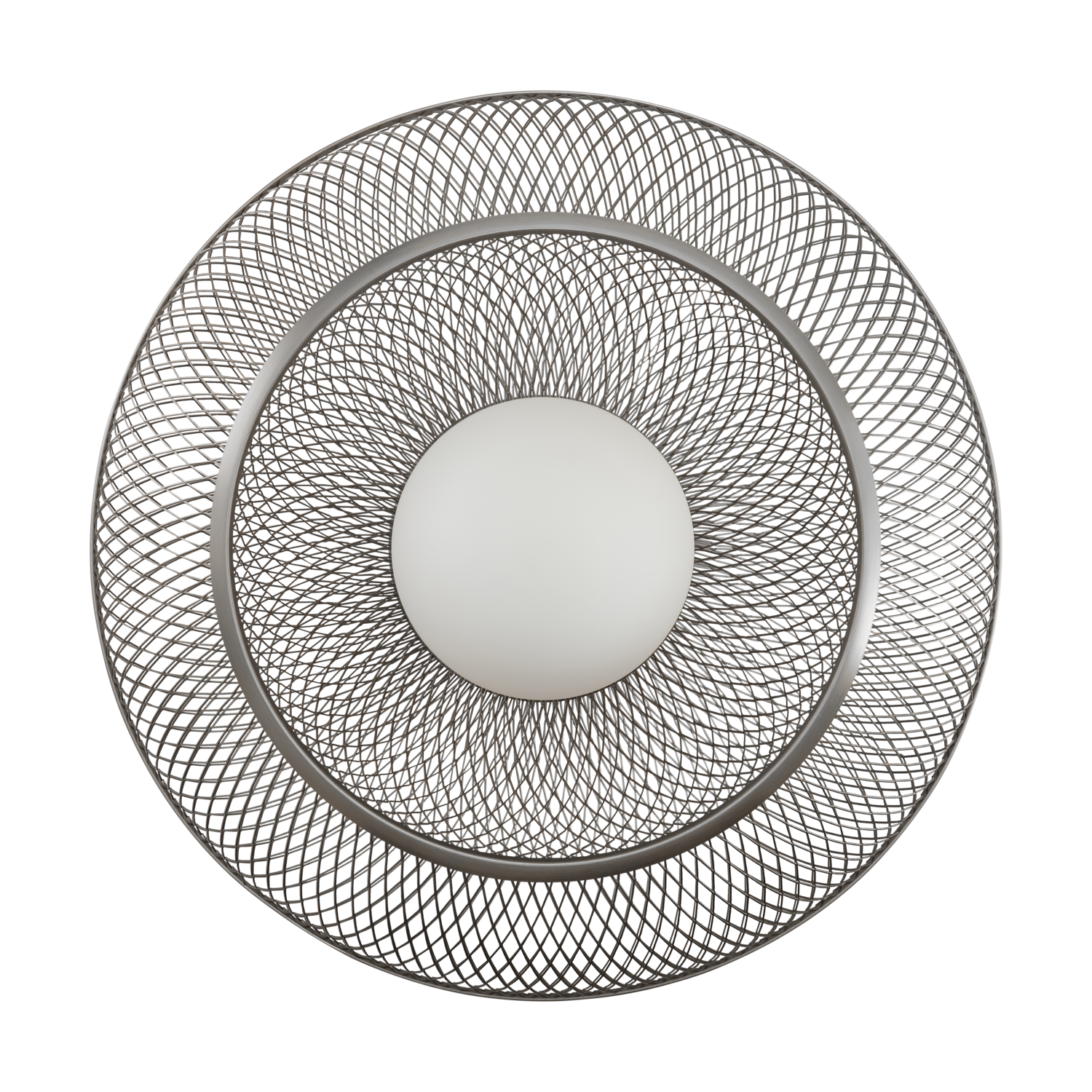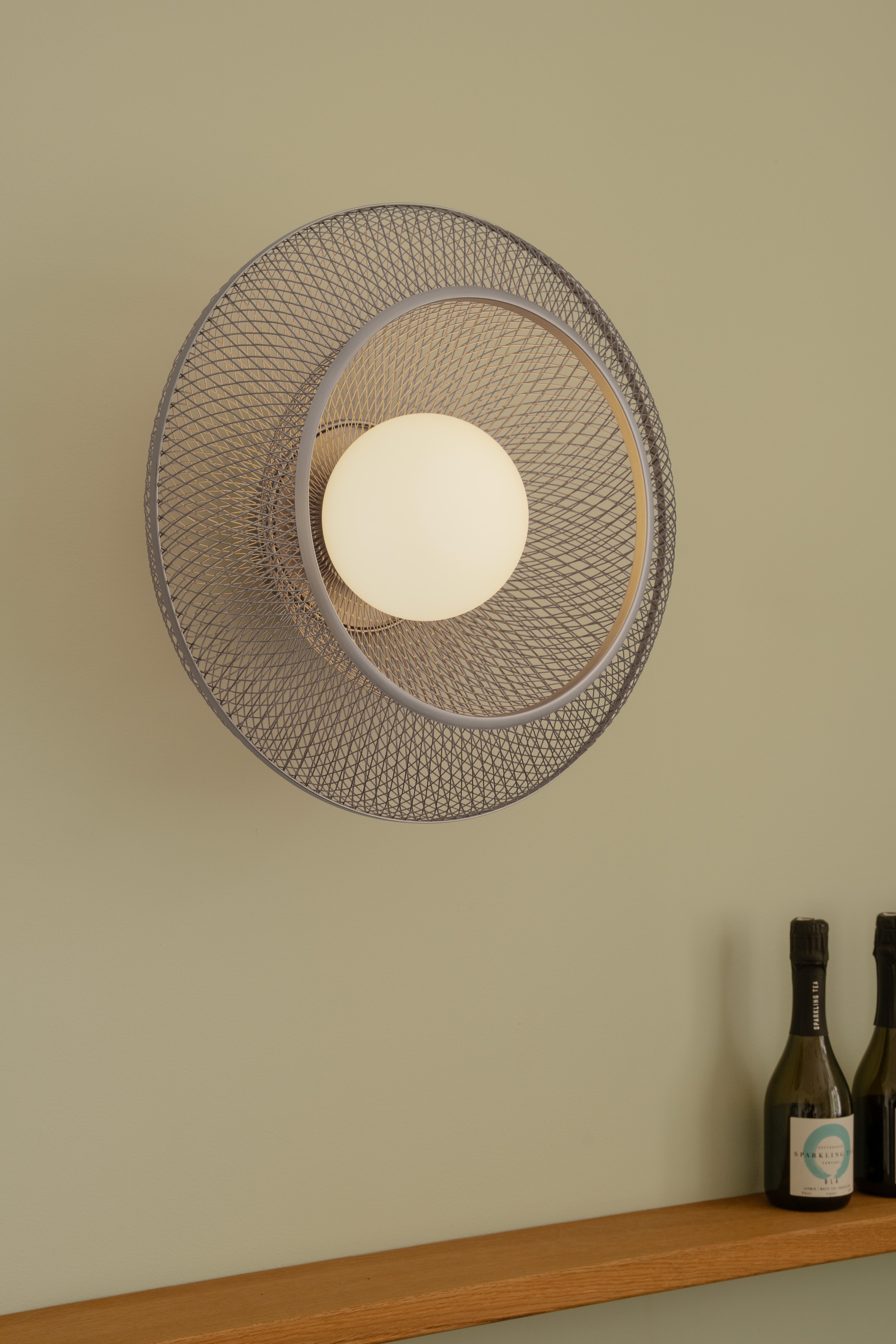 Expanding the Faraday collection, Faraday Up introduces a new wall and ceiling lamp that echoes the pendant’s sculptural design. Featuring the signature metal mesh and milky-white globe, it transforms into a luminous focal point, whether mounted alone or in multiples. Perfect for hallways, entrances, or lounge areas, it offers both functional illumination and a refined architectural presence.