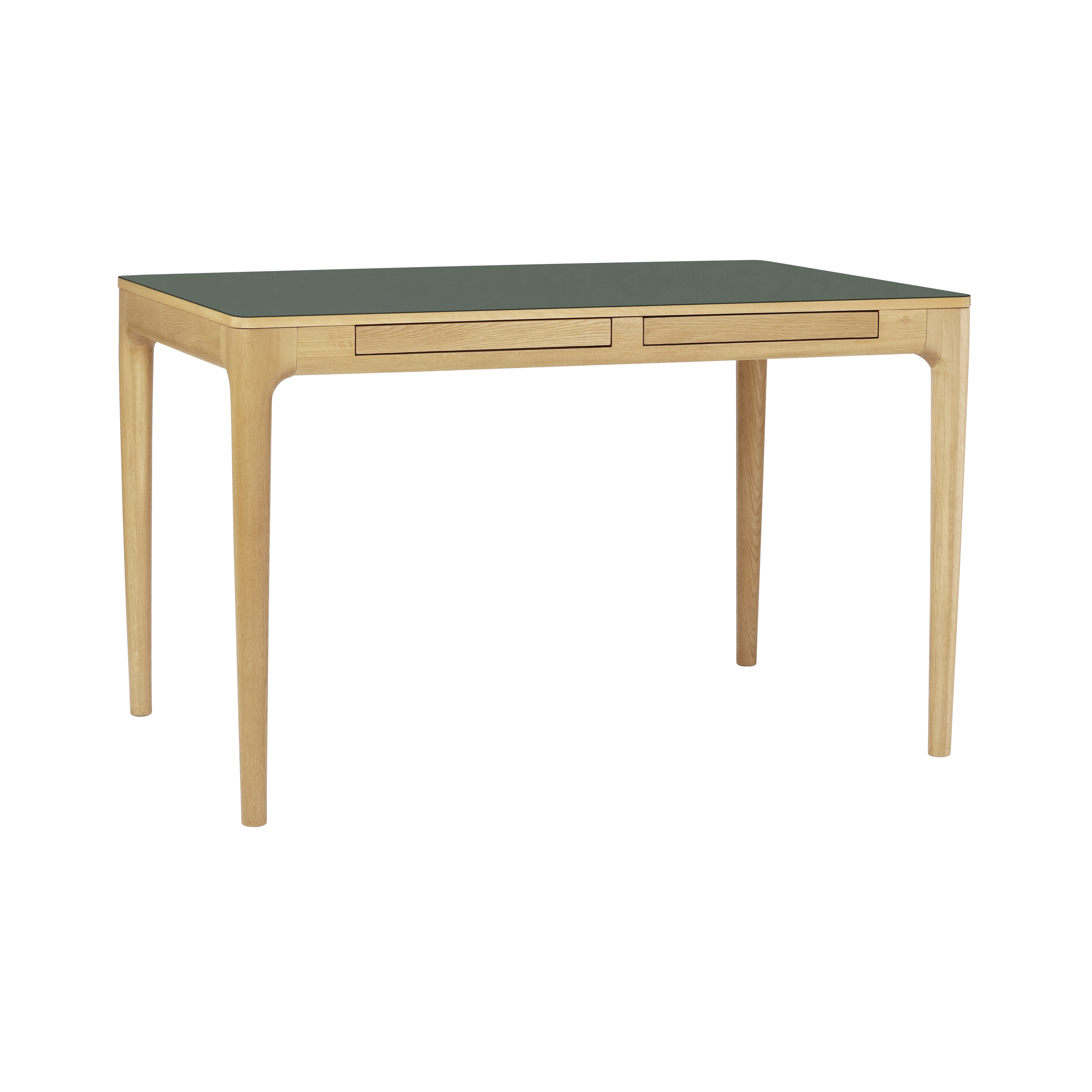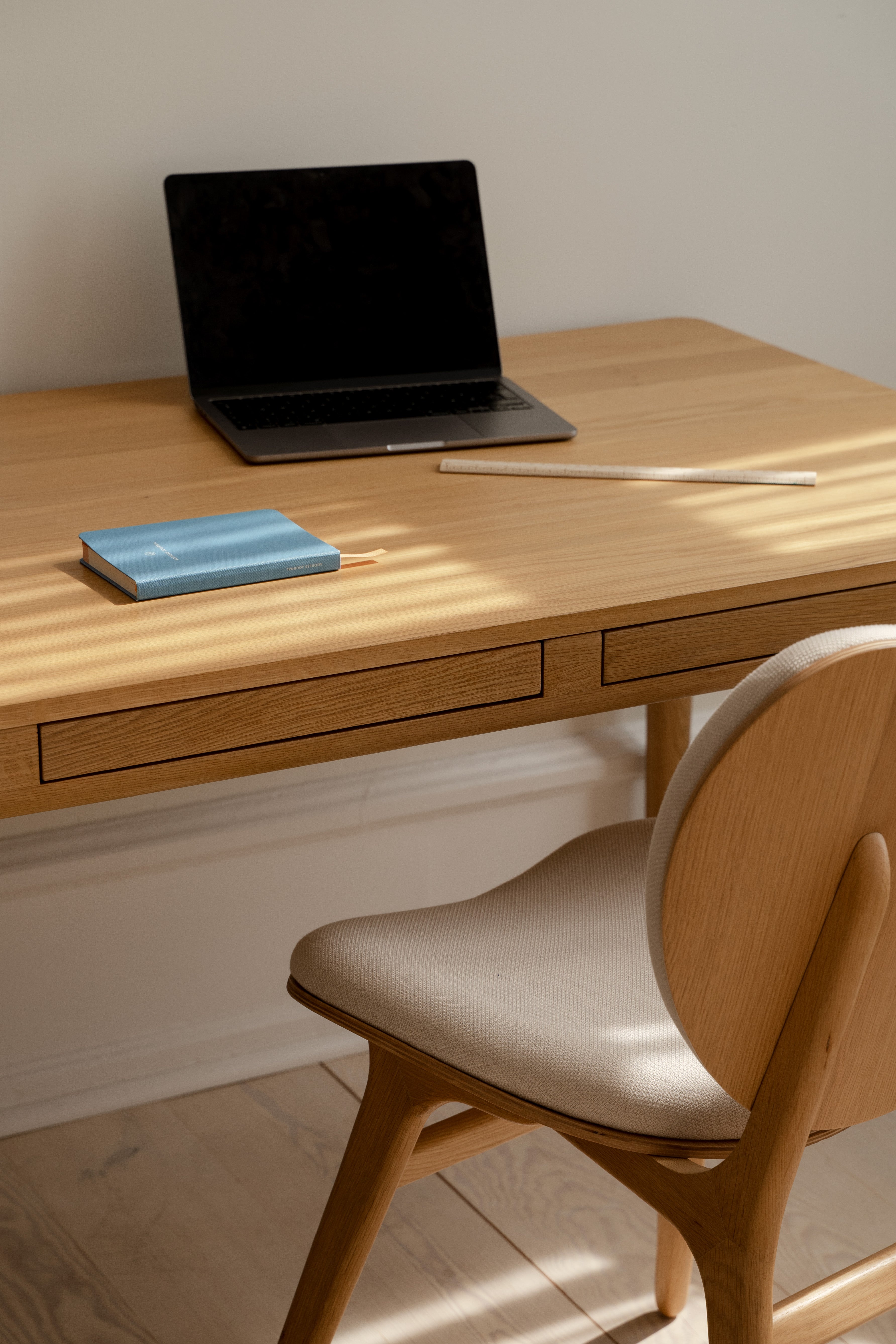 The Heart’n’Soul desk brings warmth and clarity into the workspace with its sleek, minimal design and thoughtful details. Two spacious drawers and a discreet cable tray ensure a tidy, organised surface, while rich oak, walnut, or Fenix nanolaminate finishes offer both natural beauty and durability for everyday use. Balancing elegance and functionality, the desk is perfectly sized for home offices or shared workspaces, creating an inviting place to focus and be inspired. A true blend of craftsmanship and versatility, it is designed to make working feel effortless.