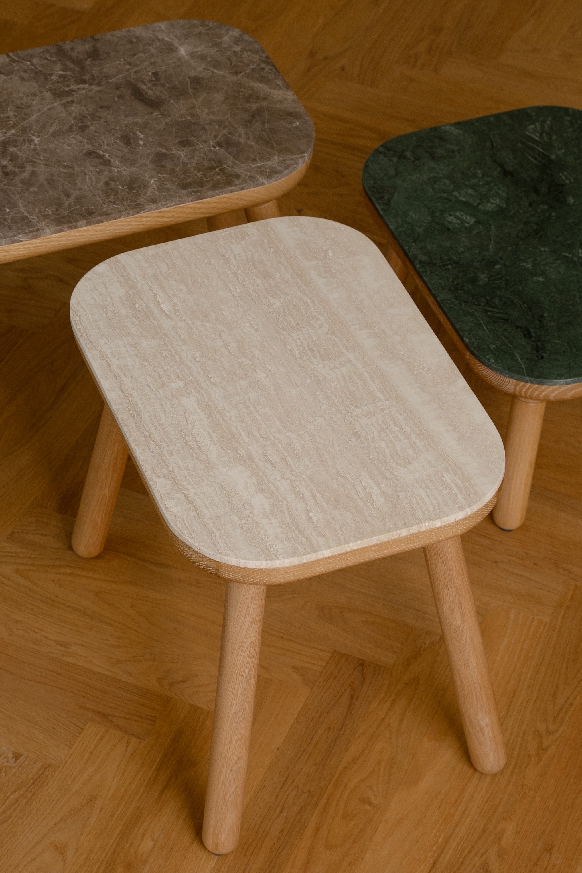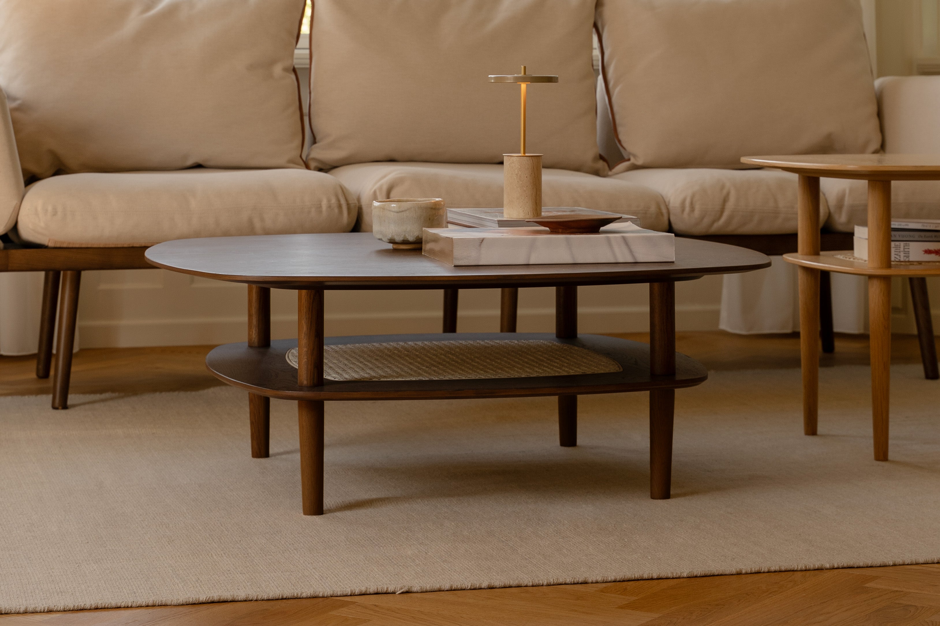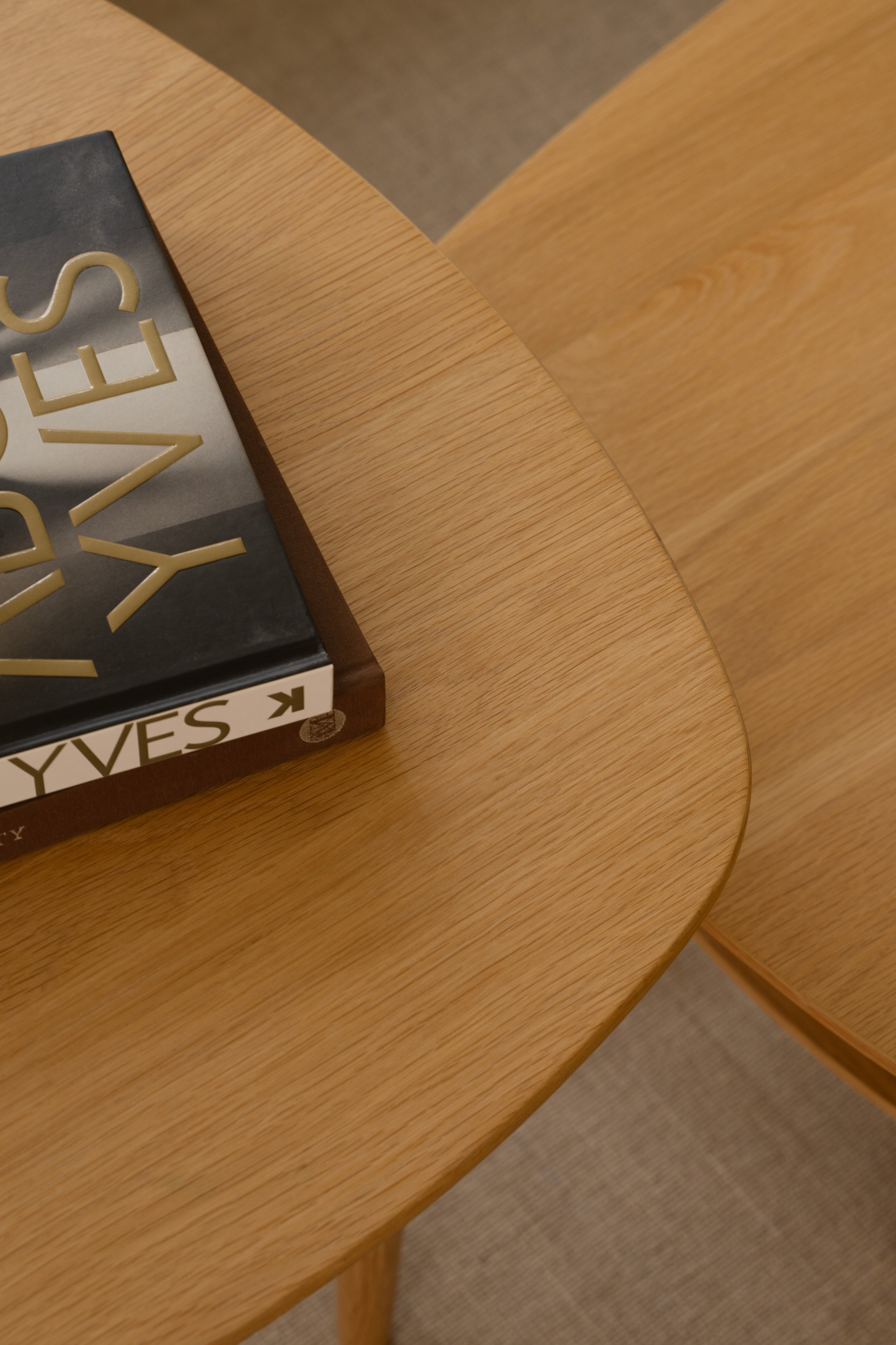 The Together collection introduces new sizes and heights, bringing greater flexibility to modern interiors. Crafted in oak with elegant details and a light cane shelf, the tables balance function and refinement, adapting effortlessly from private homes to lounge and hotel settings.