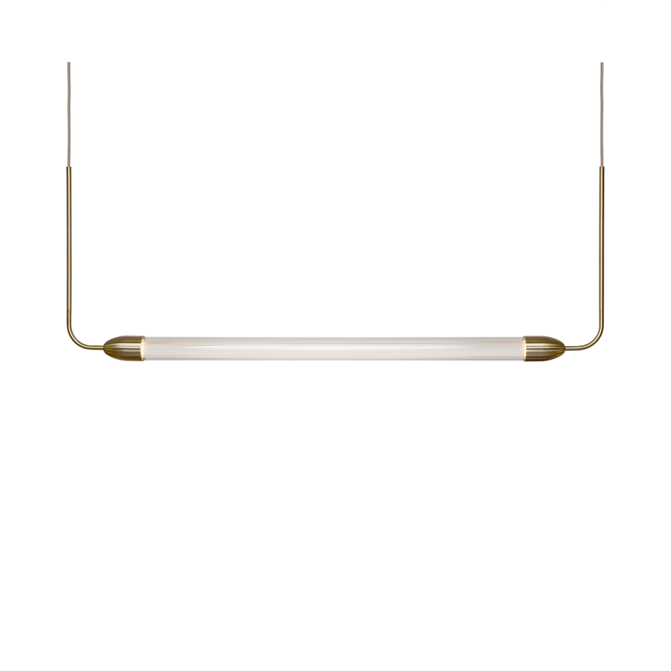 Lemon Squeeze Linear brings the collection’s signature rippled glass into a sleek horizontal pendant, offering soft, even illumination for dining areas, kitchen islands, or workspaces. Suspended in polished brass or steel, its sculptural details and textured glass combine nostalgic charm with modern elegance, adding warmth and sophistication to any setting.