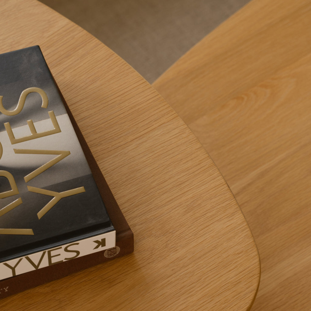 “With rounded corners and a shelf beneath, the table draws references from Danish mid-century modern and emphasizes the importance of moments spent around the centrepiece of relaxation together with family and friends.